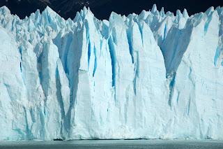 Perito Moreno ma powierzchnię 250 km2 (1 ½ powierzchni całego Wrocławia) i 30 km długości. Jego źródłem jest to samo Południowe Pole Lodowe, z którego bierze swój początek poprzednio przez nas oglądany lodowiec Grey (dowiadujemy się przy okazji, że owo pole lodowe to trzeci co do wielkości magazyn słodkiej wody na świecie). Lodowiec Perito Moreno to jeden z trzech lodowców w Patagonii, które są w stanie równowagi. Cała masa innych znajduje się w stanie regresji, czyli cofania. Nb. topnienie lodowców w Patagonii jest najintensywniejsze ze wszystkich regionów świata (więc jeśli ktoś chce je zobaczyć, niech czym prędzej to robi, zanim będzie „po ptokach” :-).